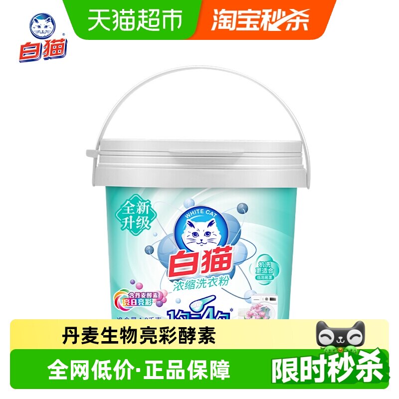 白猫浓缩洗衣粉3.6斤桶装1.8kg自带勺双效酵素低泡易漂酵素