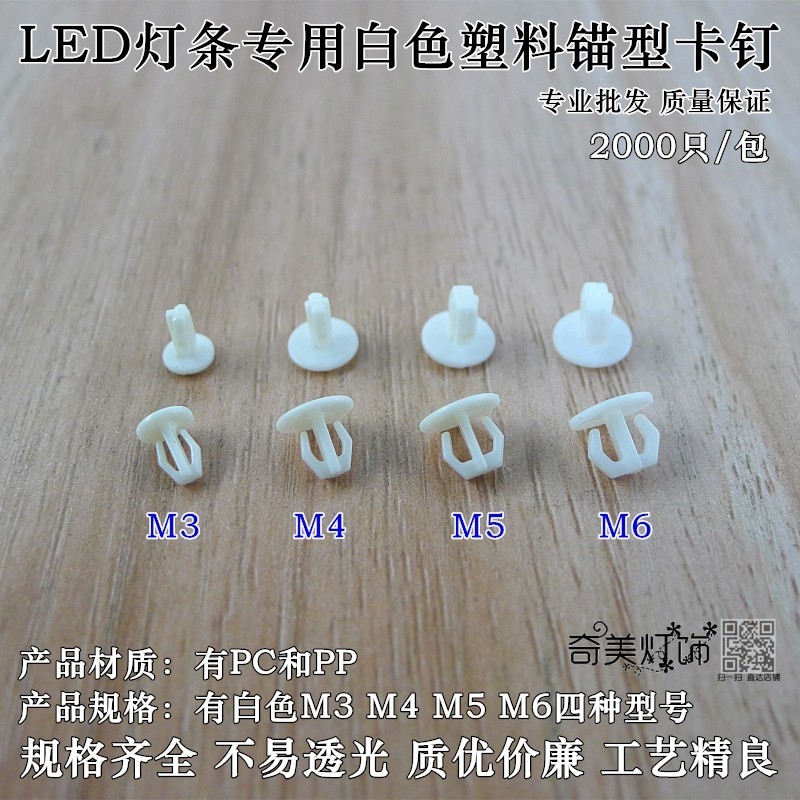 包邮LED吸顶灯板灯条光源PC白色塑料卡子单头M4锚型卡钉灯盘灯座