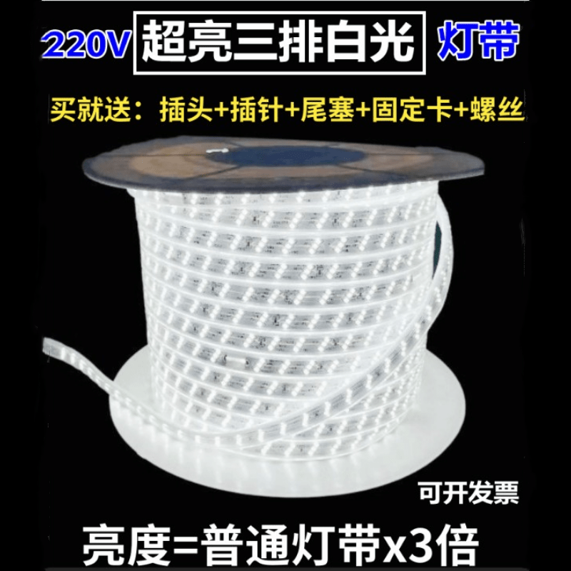 户外防水白光LED灯带220V2835超亮三排白色灯条家装吊顶酒店工程