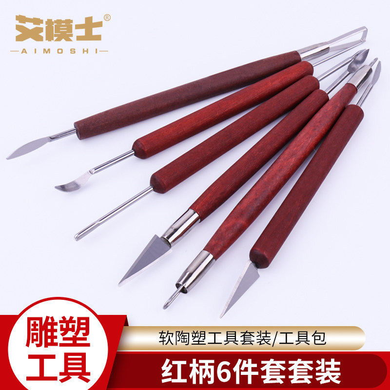 泥塑工具手办陶艺粘土精雕油x泥陶泥彩色油泥软陶红柄6件套泥塑刀