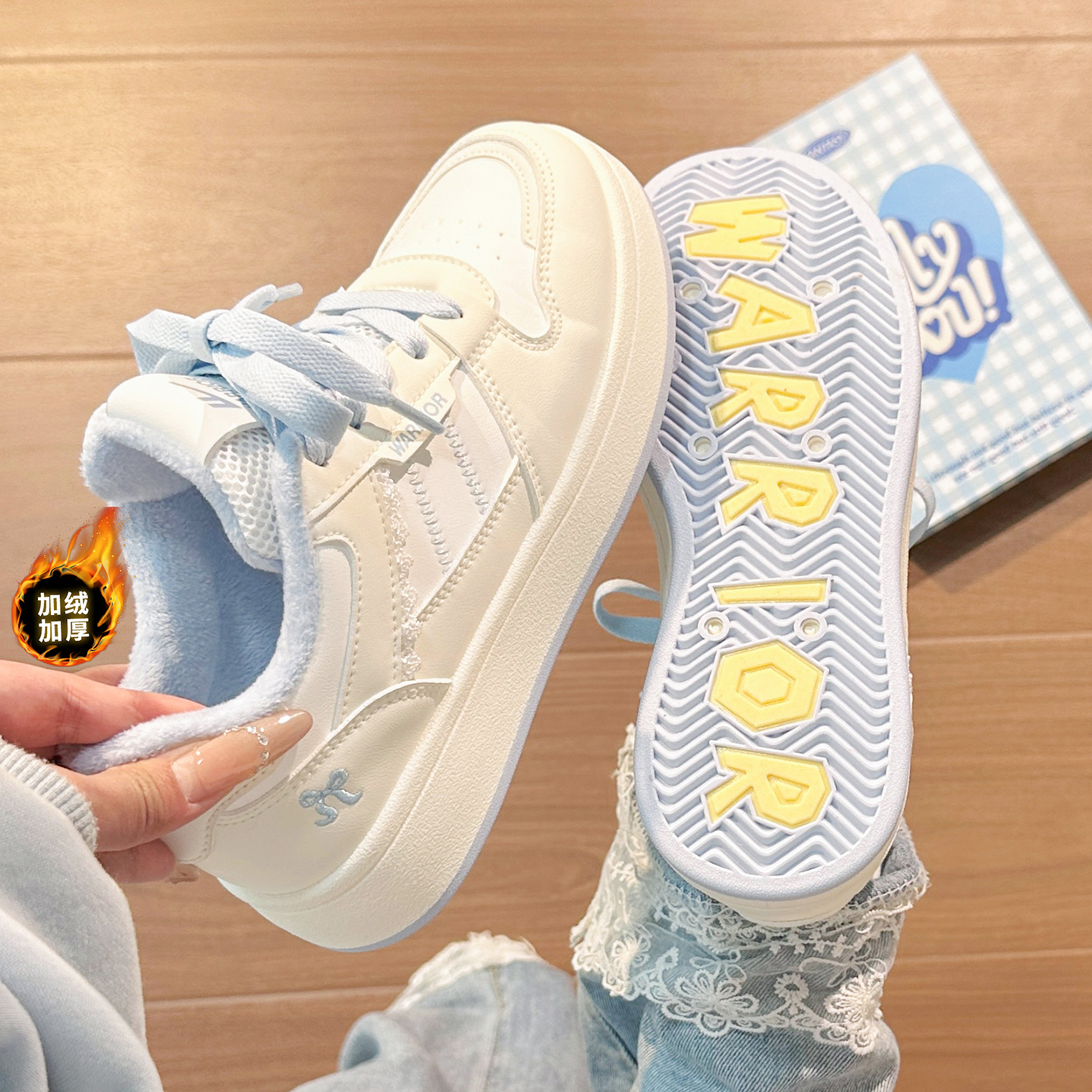回力蕾丝加绒小白鞋女2025秋冬爆款厚底二棉鞋韩版防滑休闲板鞋子