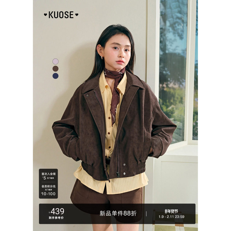 阔色棕色哑光皮衣翻领短款外套2026春季小个子穿搭新款粉色上衣秋