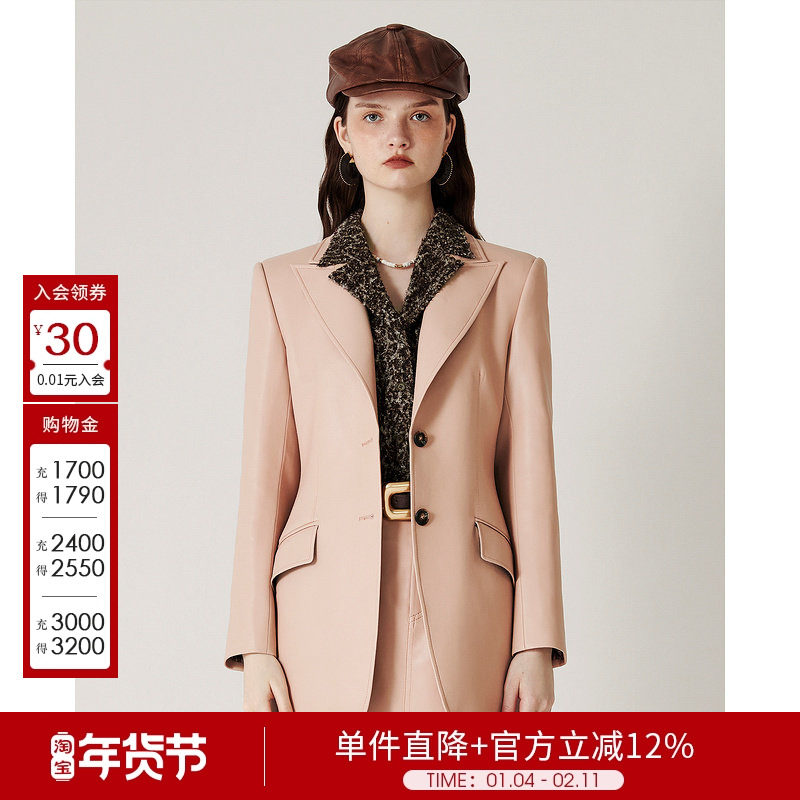 D佳美学馆复古英伦风桃粉色皮衣女秋冬通勤气质典雅精致西装外套