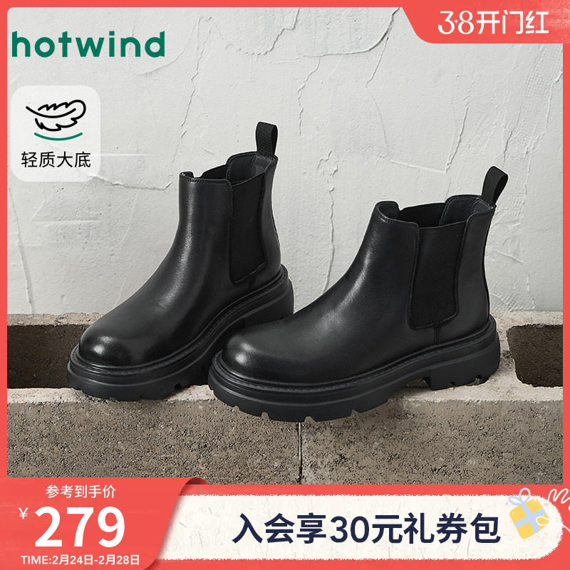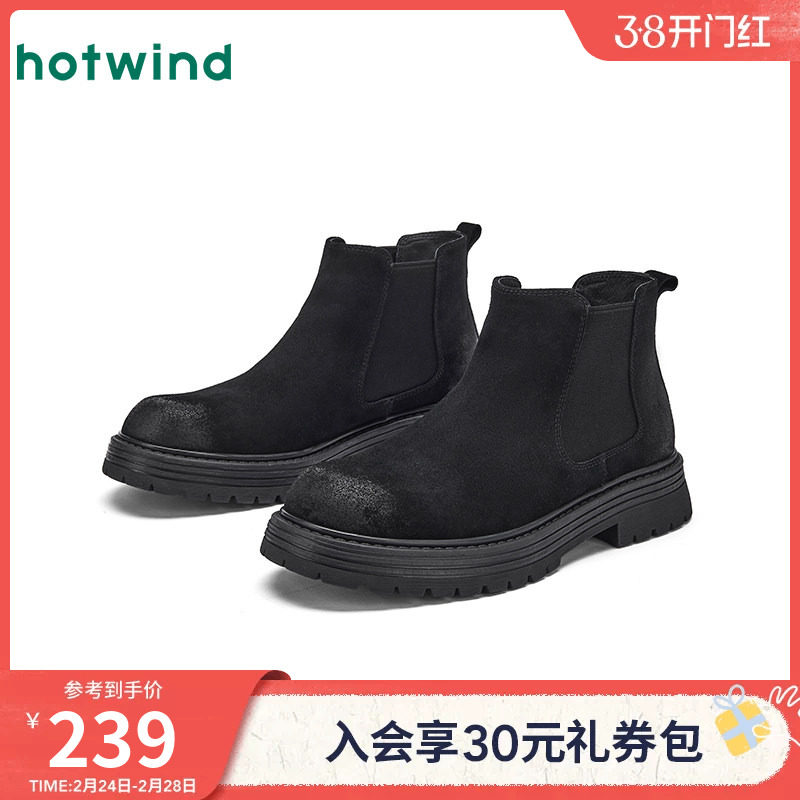 热风男鞋2025年冬季新款黑色潮酷马丁靴增高切尔西靴厚底休闲靴子