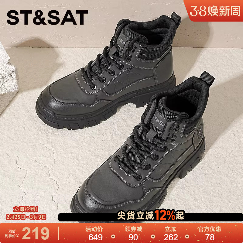 星期六2025新款男士马丁靴子黑色靴增高工装登山皮靴高筒靴子男款
