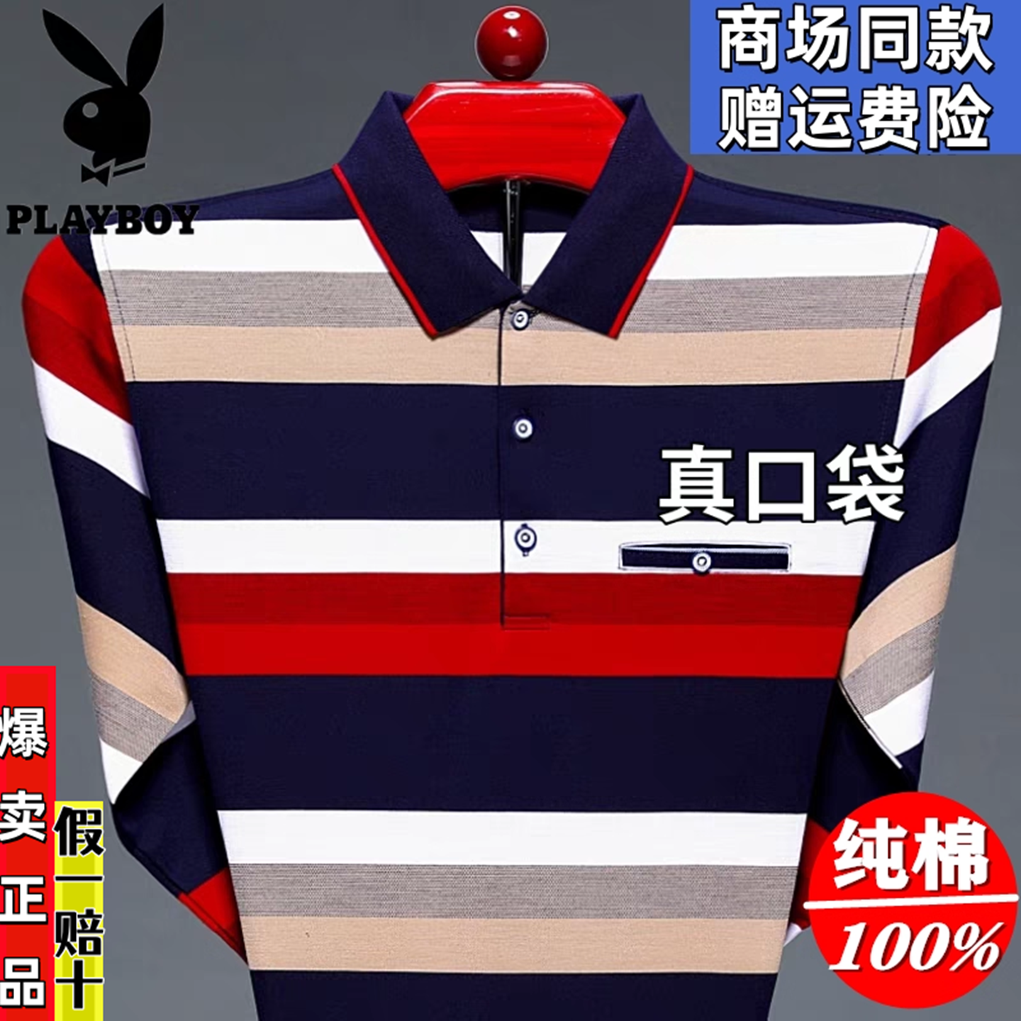 花花公子长袖t恤男士纯棉秋季中年翻领爸爸装针织打底Polo衫上衣