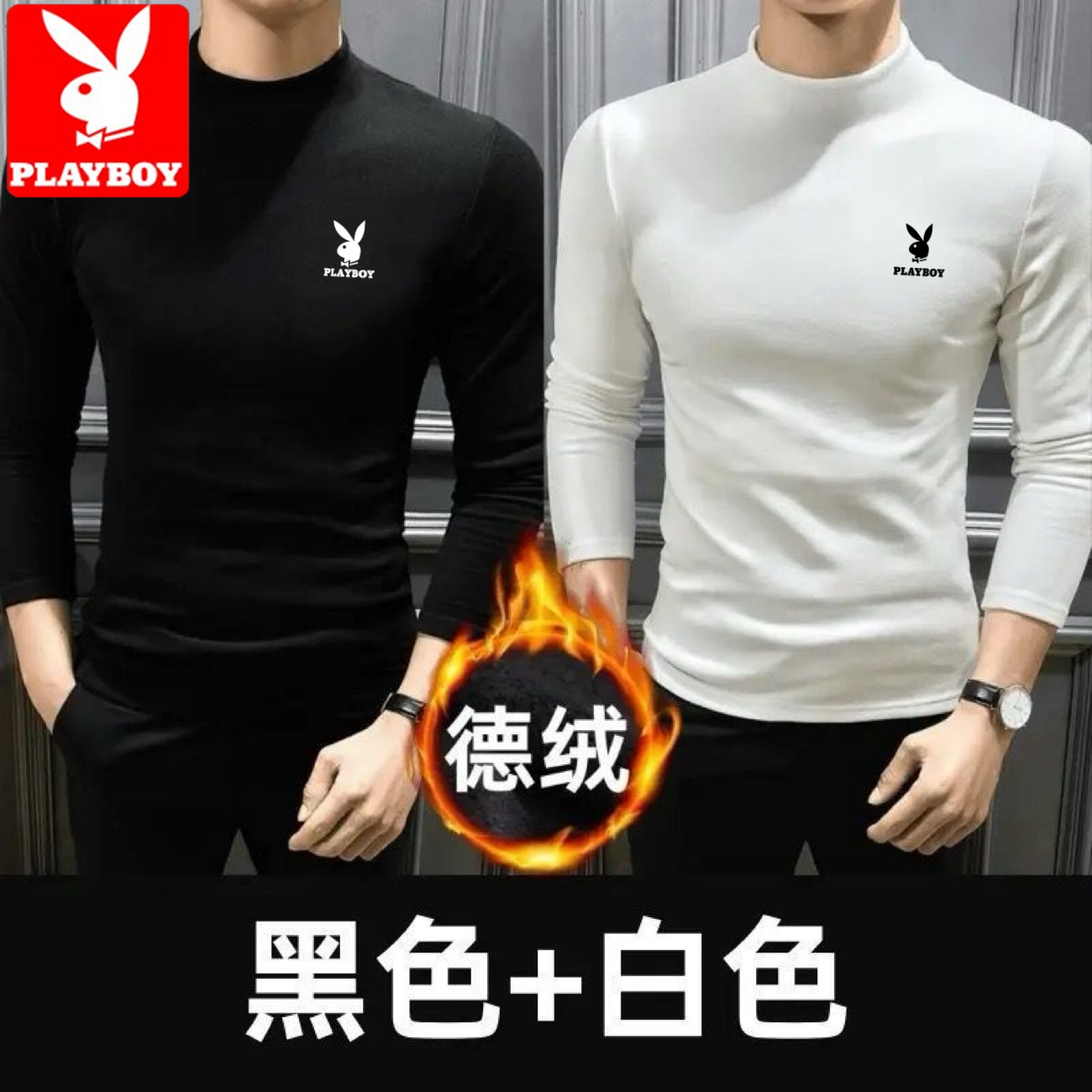 花花公子德绒长袖t恤男士双面绒打底衫秋冬半高领百搭保暖上衣男