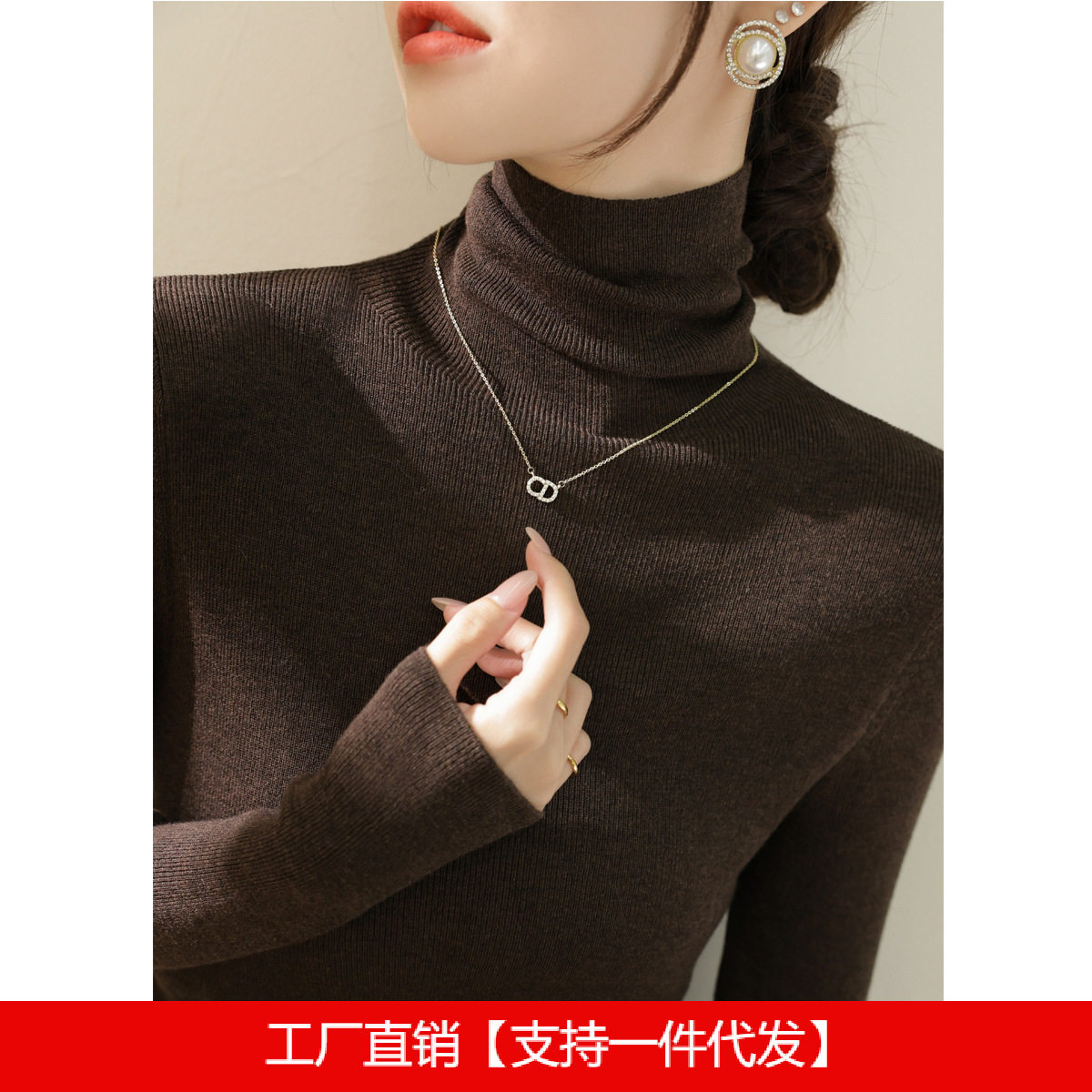软糯百搭针织打底衫女装春秋新款堆堆领毛衣内搭修身显瘦长袖上衣