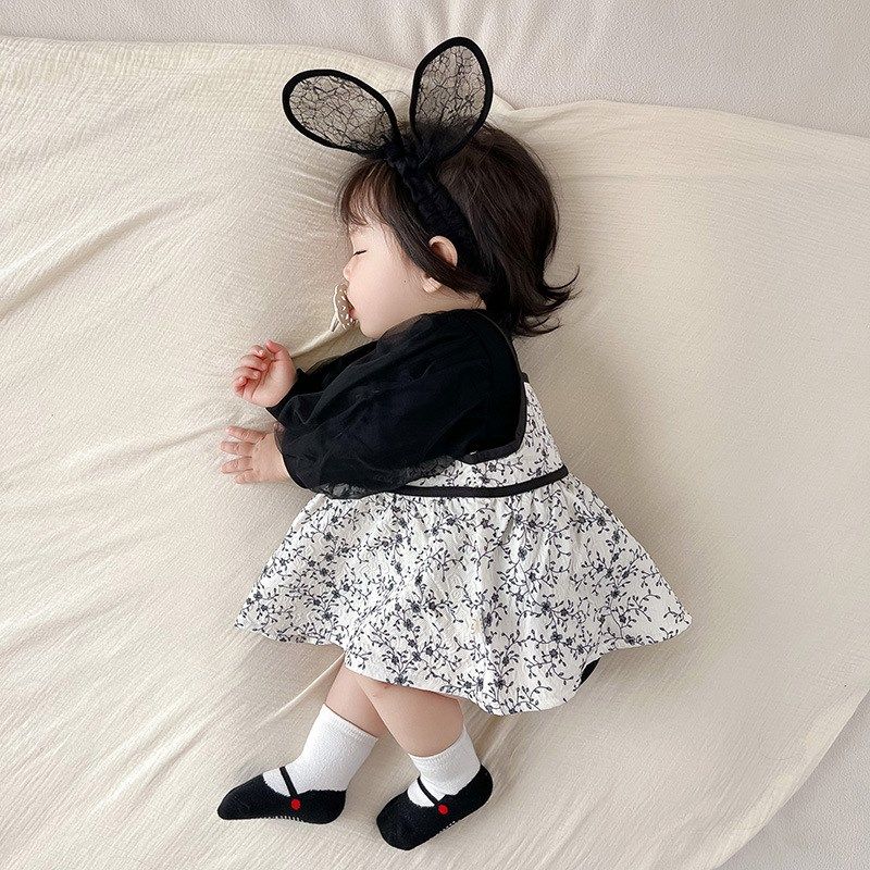 2024春秋款薄款婴儿秋装吊带连衣裙女宝包屁衣碎花两件套装可爱