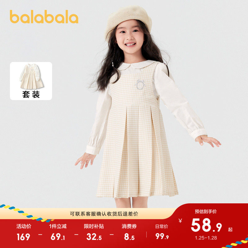 巴拉巴拉童装儿童连衣裙长袖套装女童春秋装衬衣吊带两件套洋气甜