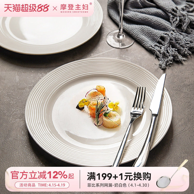 摩登主妇白瓷西餐盘家用盘子高级感早餐意面盘菜碟子平盘牛排餐盘