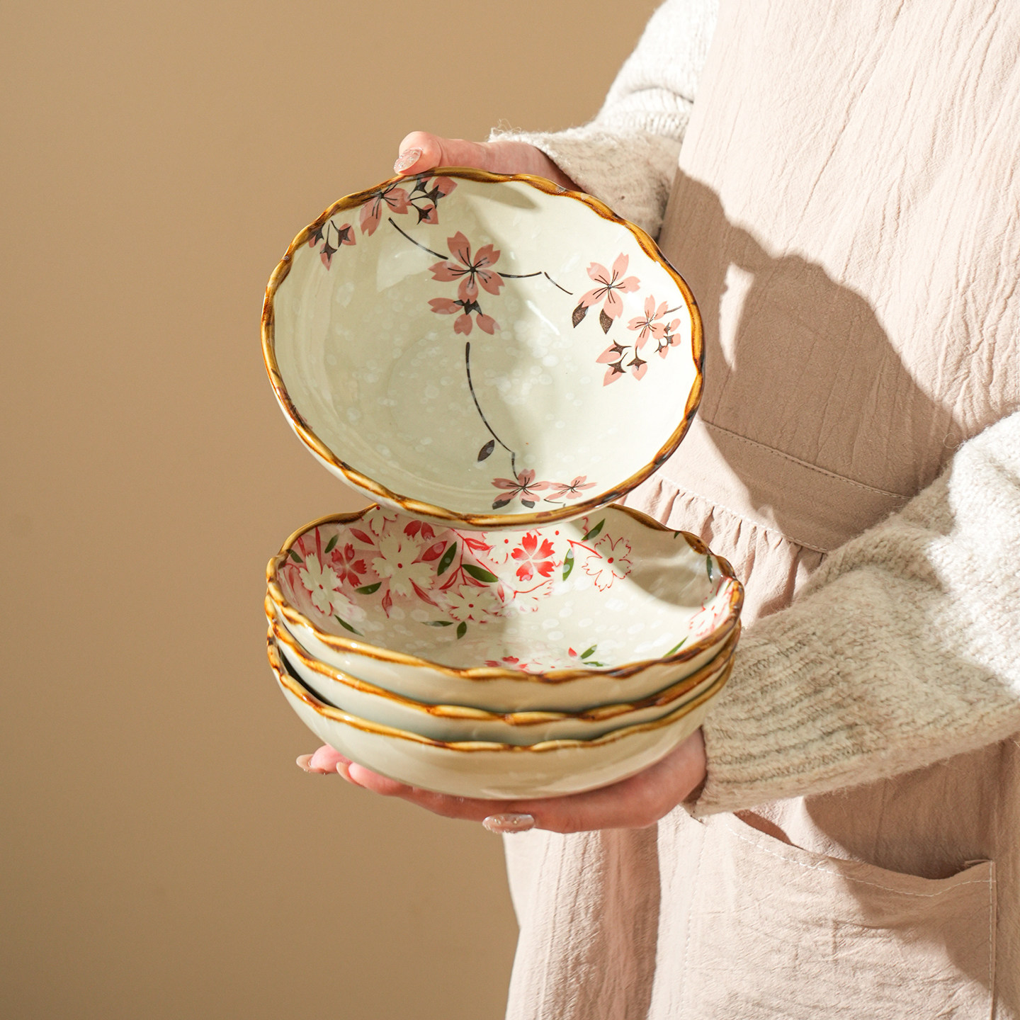 舍里日式樱花陶瓷盘家用釉下彩餐具复古菜盘深盘花边西餐盘甜品盘