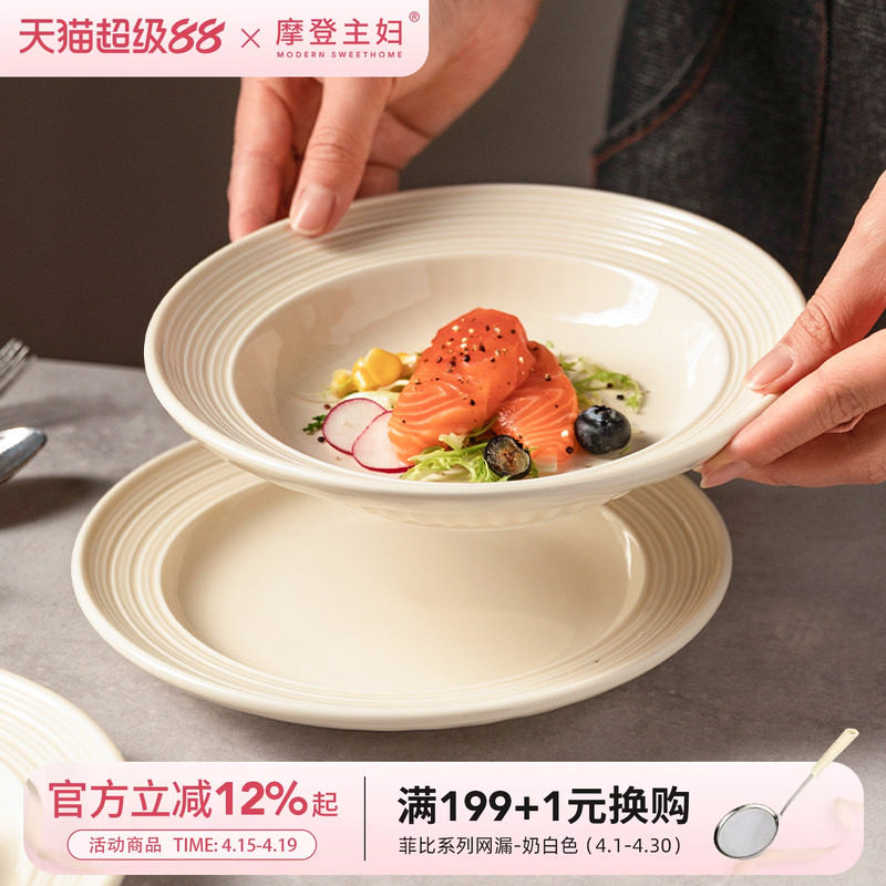 摩登主妇陶瓷盘子家用菜盘高级感意面深盘西餐餐盘2026新款草帽盘