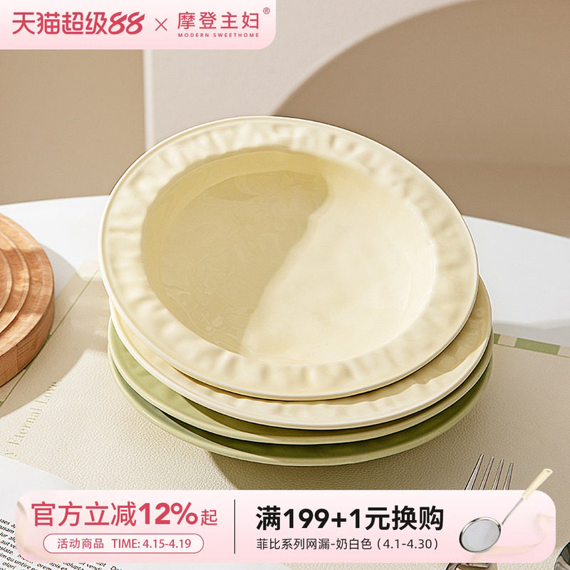 摩登主妇盘子家用菜盘2026新款高级感餐具西餐牛排意面深盘草帽盘