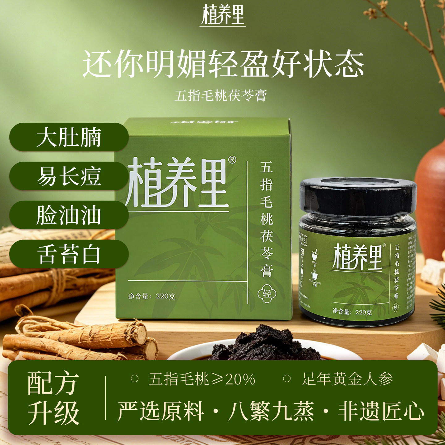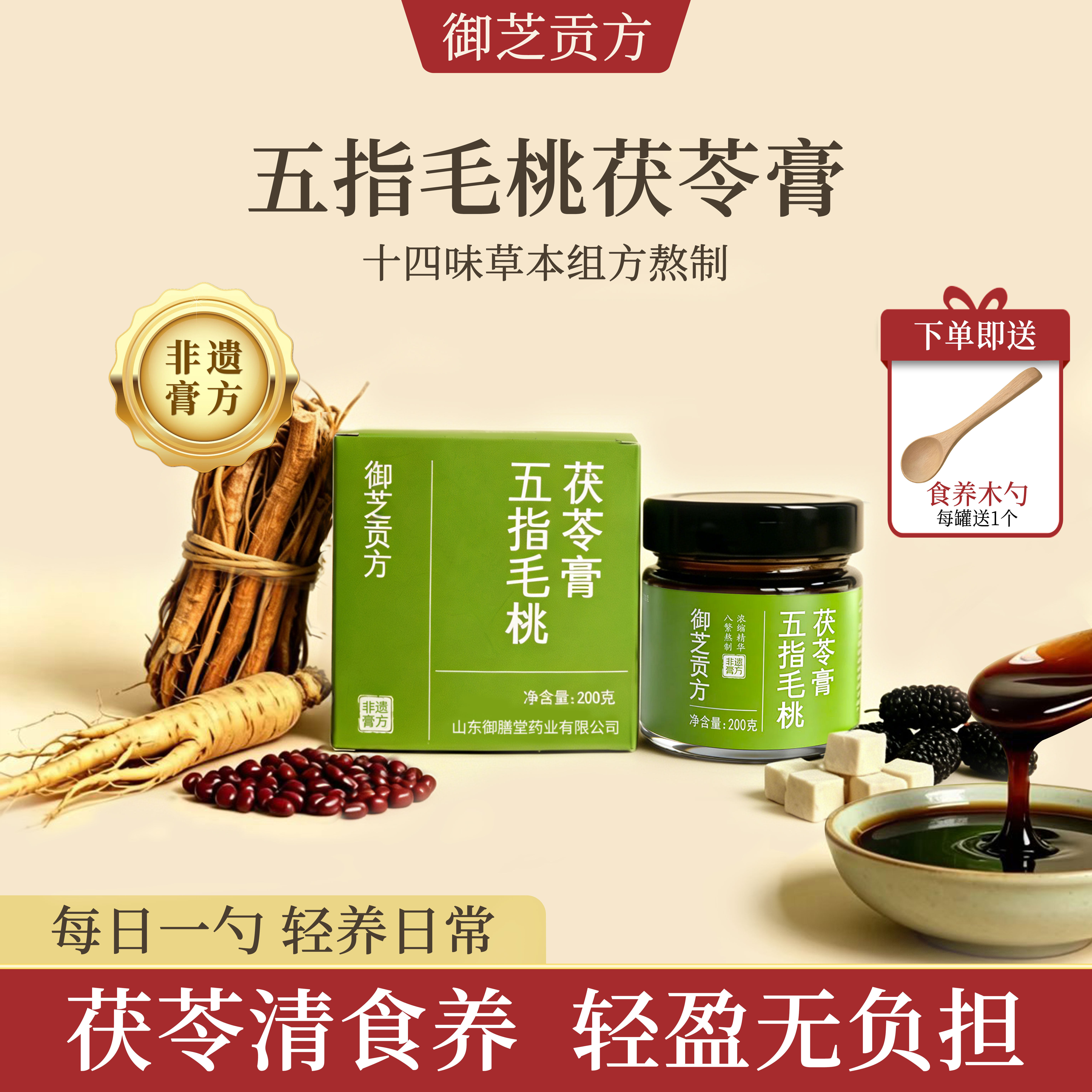 御芝贡方五指毛桃茯苓膏茯湿膏赤小豆桑葚清养生膏祛伏湿膏草本膏