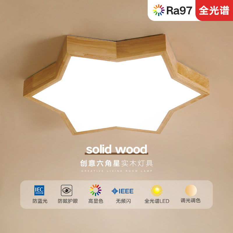 北欧卧室灯实木创意房间吸顶灯书房木质简约全光谱护眼日式led灯