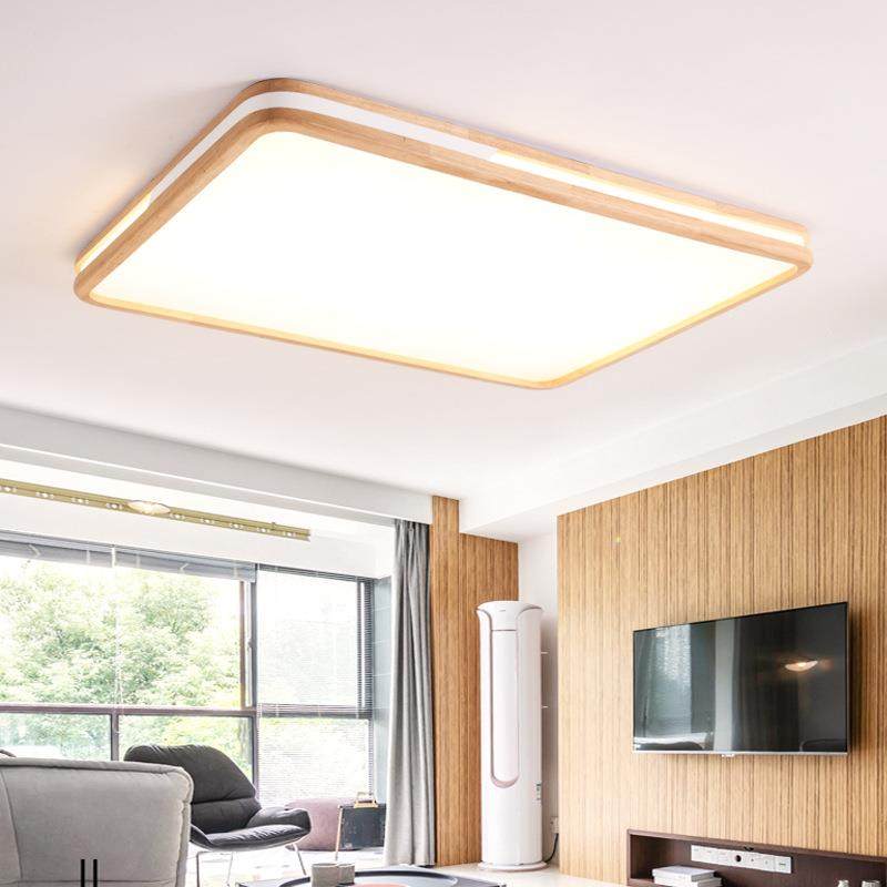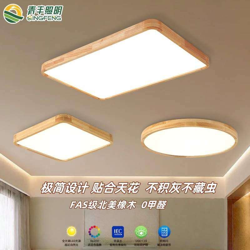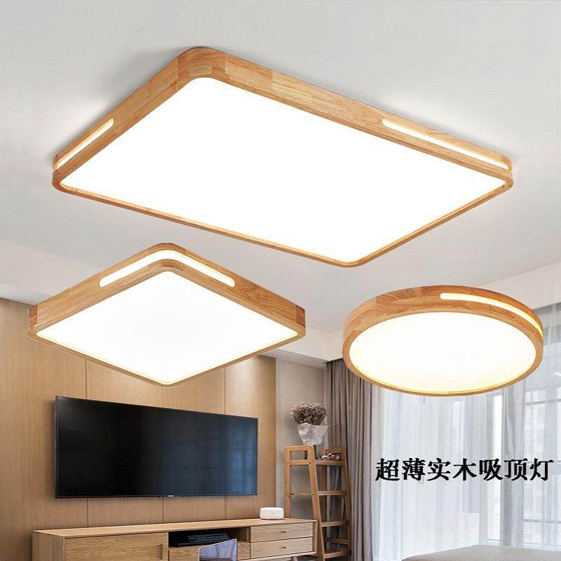 日式木质吸顶灯超薄长方形客厅灯简约现代卧室书房间灯圆形方形灯
