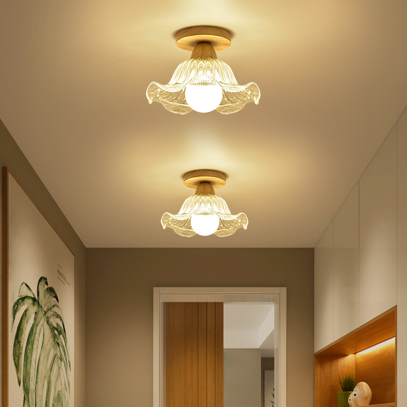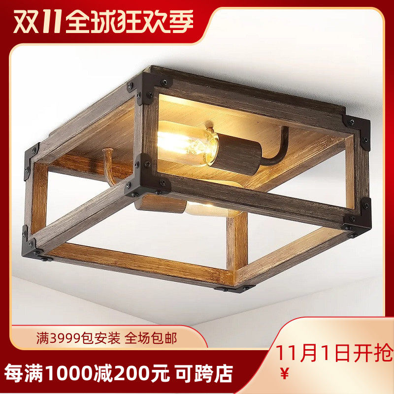 走廊过道灯北欧日式原木吸顶灯新款民宿入户门厅玄关阳台木质灯具