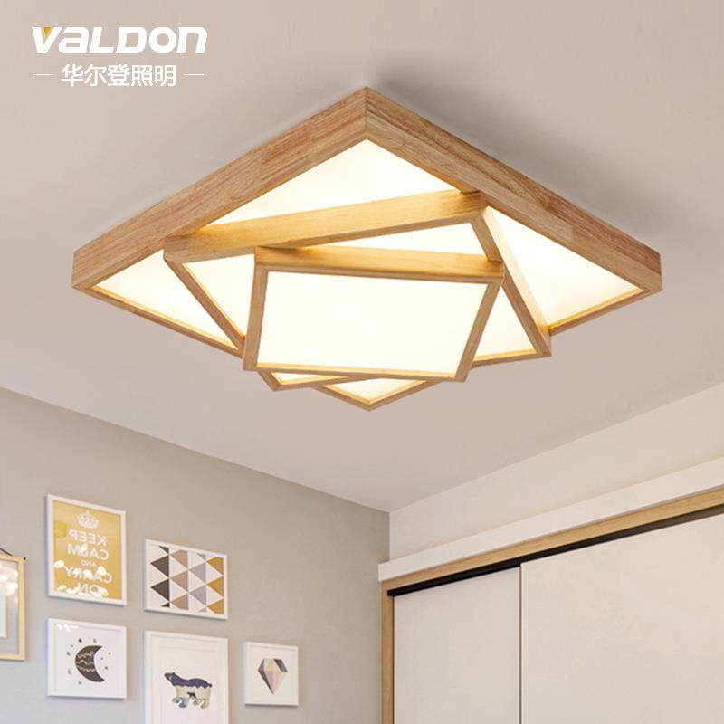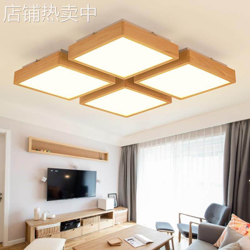 北欧客厅吸顶灯现代简约正方形大气卧室书房灯日式几何木质吸顶灯
