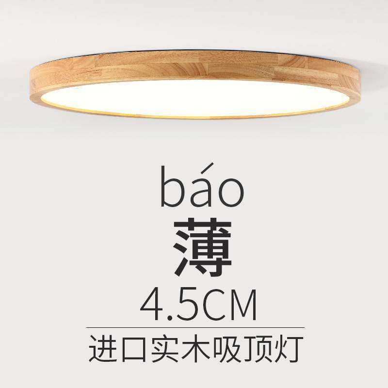 原木LED超薄实木质吸顶灯卧室灯圆形简约北欧风格阳台日式灯-220V