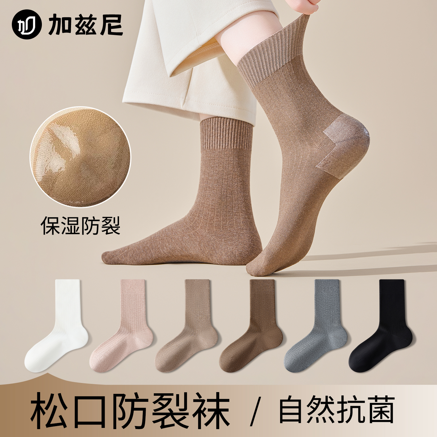 防裂袜子女款脚后跟干裂春秋款纯棉硅胶保湿护足袜全棉无骨中筒袜