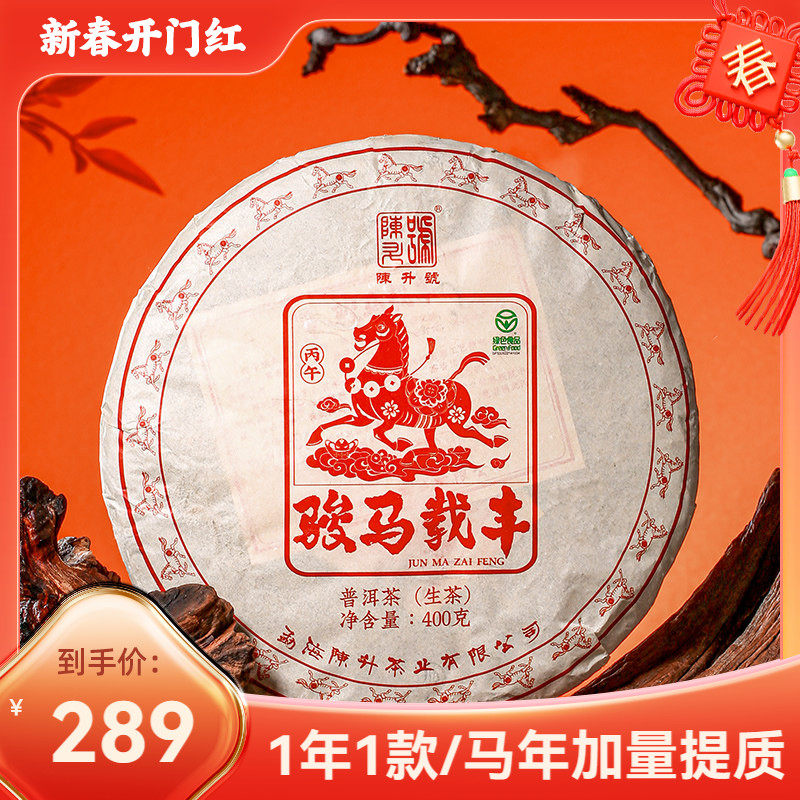 【马年纪念饼】陈升号马上有钱普洱茶357g饼茶勐海普洱生茶饼茶叶