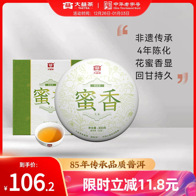 大益普洱茶蜜香普洱生茶饼茶300g云南勐海茶叶正品官方旗舰店