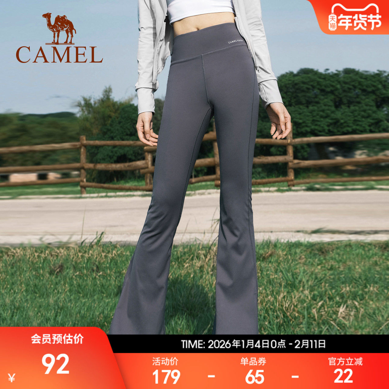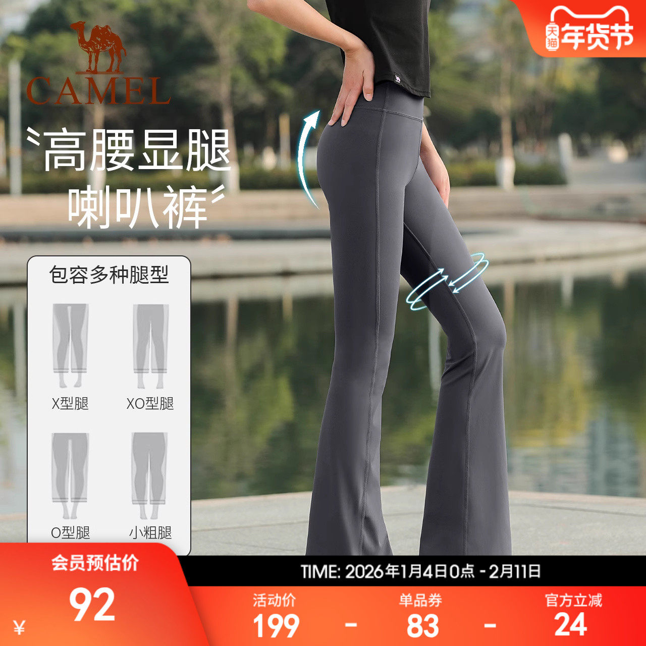 骆驼运动裤女春季新款防晒微喇叭鲨鱼裤高弹高腰瑜伽裤外穿阔腿裤