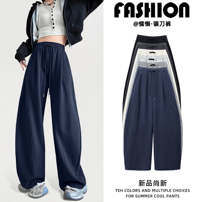 美式高腰宽松运动裤女春季新款大码胖mm显瘦遮肉大裤腿香蕉阔腿裤