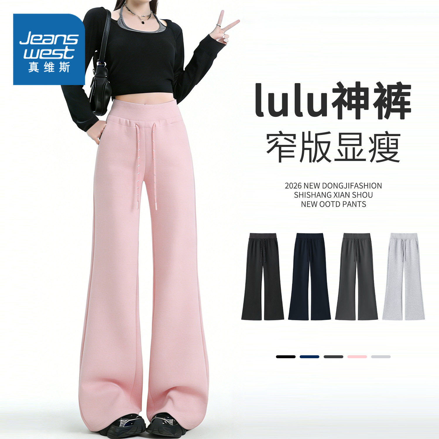 KMV真维斯微喇运动裤女春季2026新款高腰修身显瘦垂感休闲裤卫裤