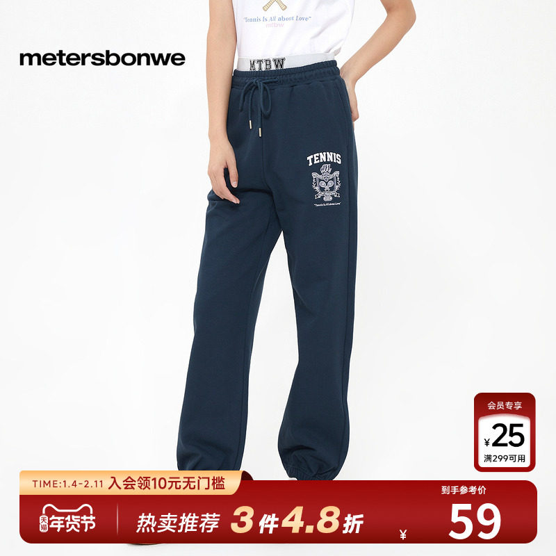 美特斯邦威运动裤女春季新款绣花束脚舒适高腰卫裤下装纯棉长裤子