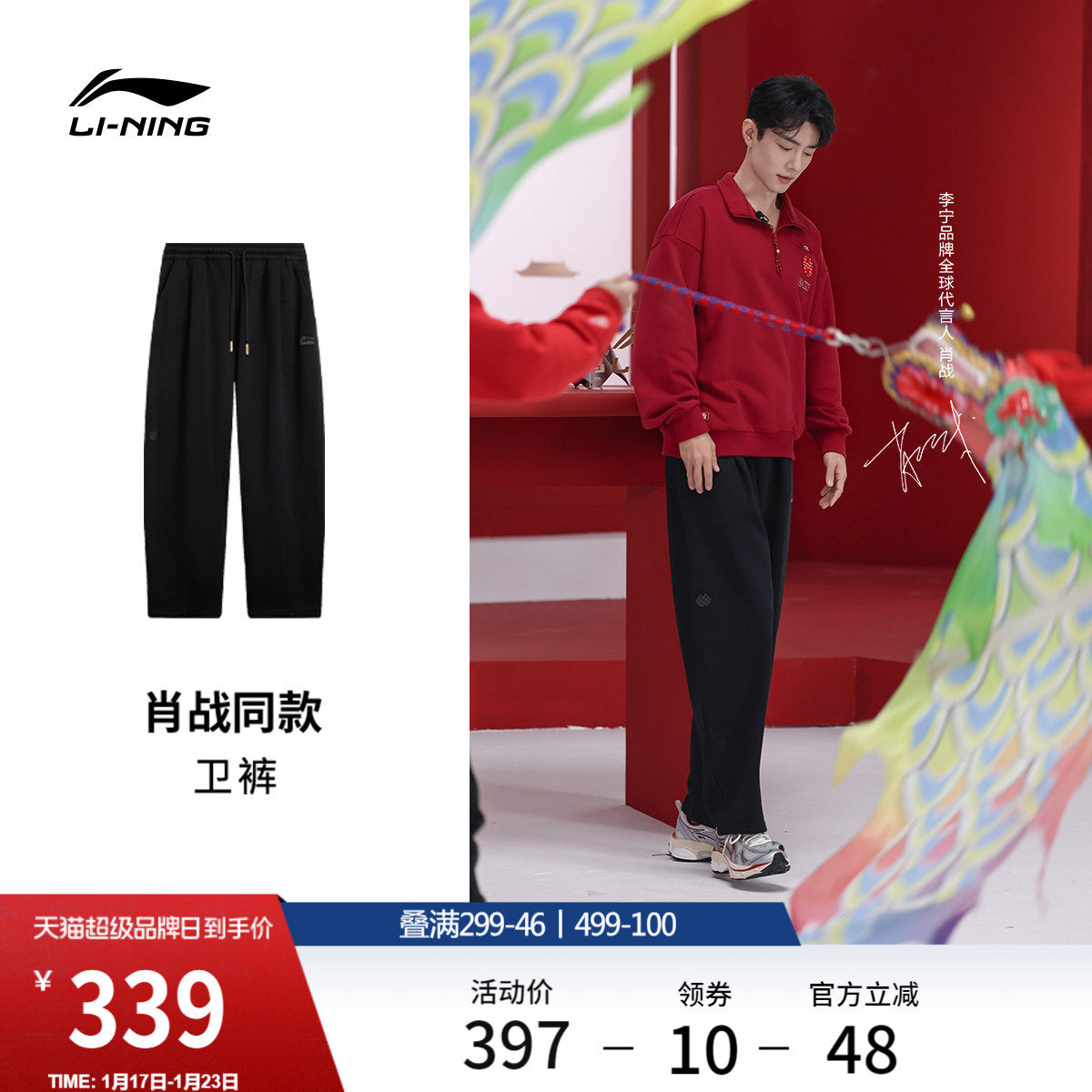 【肖战同款】李宁故宫联名26新款马年卫裤男女春季弯刀休闲运动裤