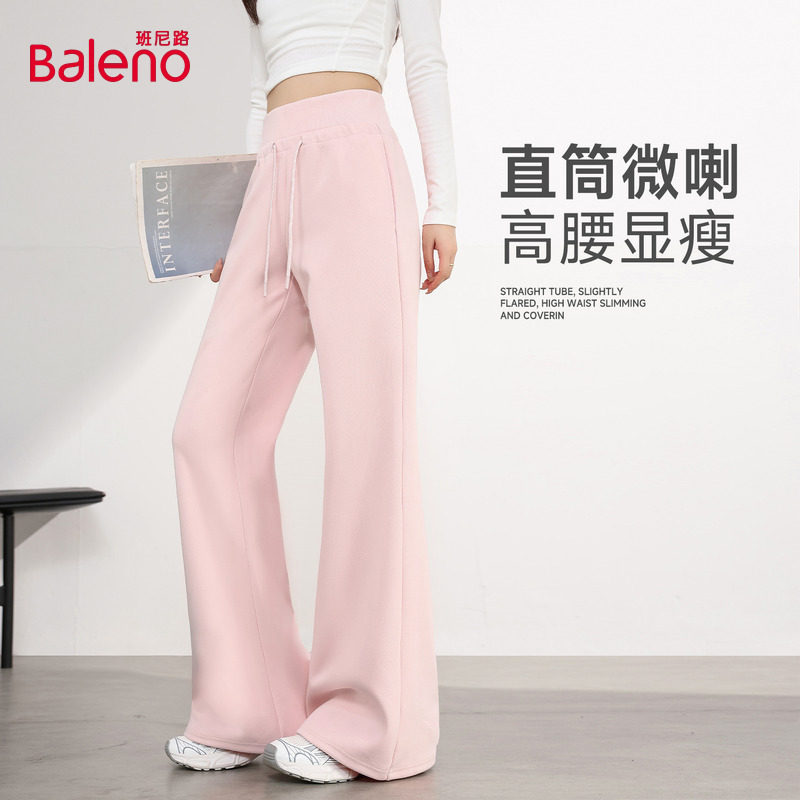 班尼路微喇运动裤女春季新款高腰阔腿喇叭裤宽松休闲百搭直筒裤N