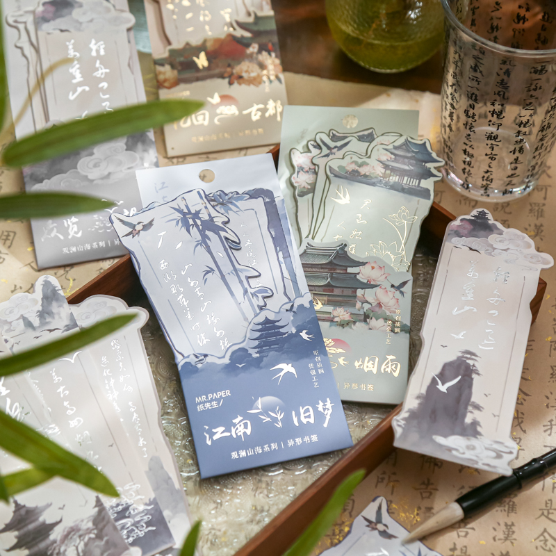 纸先生观澜山海异形书签国潮古风诗词中国风古风创意ins风趣味创意学生用手账标签高级感异形书签diy装饰礼物