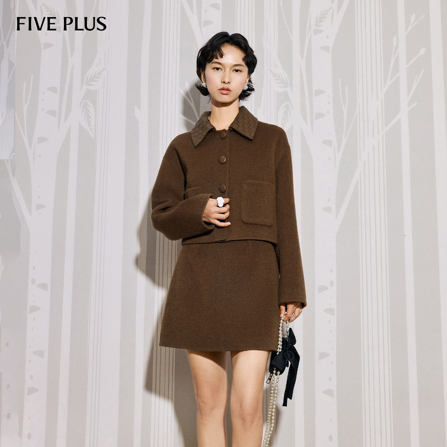 FIVE PLUS呢料绵羊毛立体剪裁显瘦翻领毛呢短外套2025新款女秋装