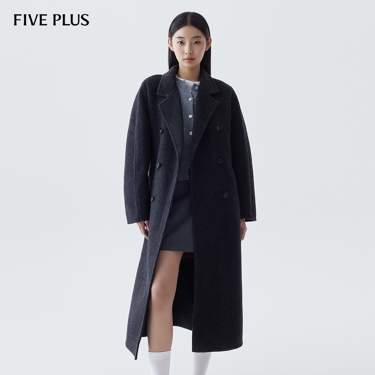 FIVE PLUS羊绒呢大衣女中长款外套复古宽松双排扣绵羊毛毛呢外套