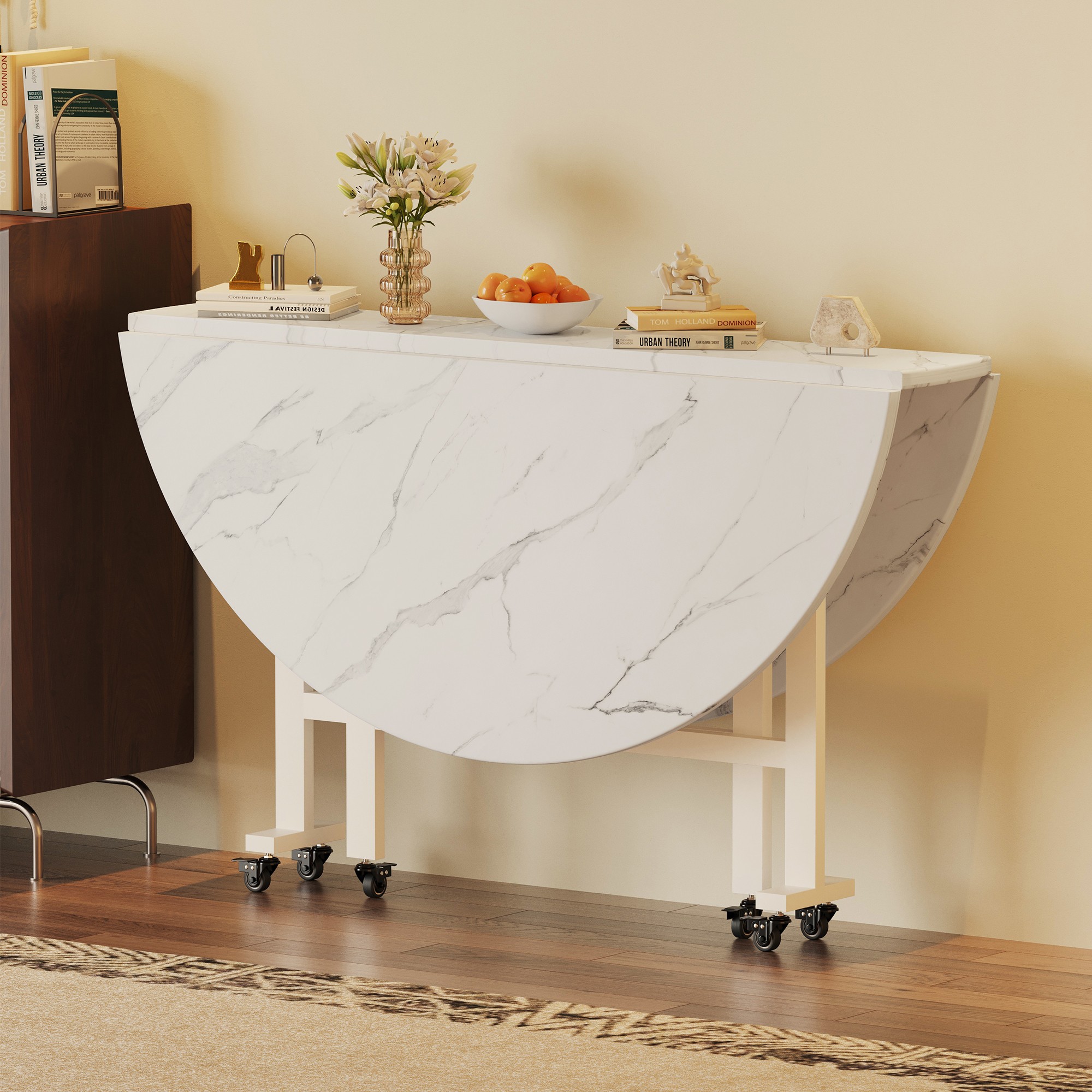 免安装折叠桌g家用小户型大圆桌酒店餐厅餐桌实木大理石纹吃饭桌