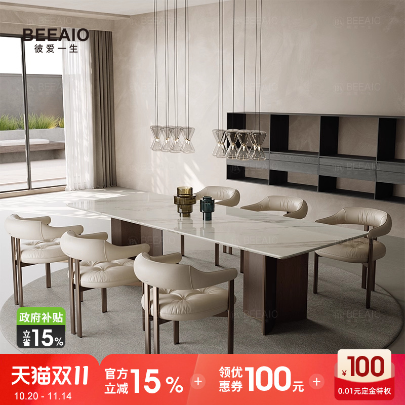 意式轻奢奢石餐桌实木2025高端现代别墅大平层纯天然大理石餐桌
