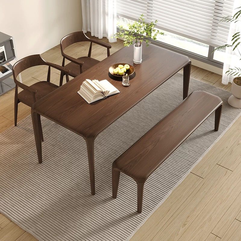 出乎生活闲来餐桌实木岩板桌子小户型家用简约黑胡桃木长方形饭桌