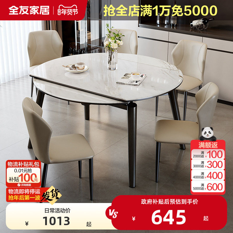 - 可伸缩餐桌椅组合 实木