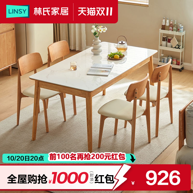 林氏家居原木风岩板餐桌实木脚家用长方形饭桌椅2025新款林氏木业