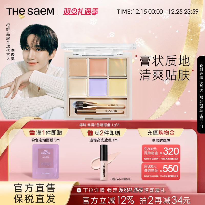 The Saem得鲜丝滑6色遮瑕盘服帖面部遮瑕高光遮盖痘印泪沟黑眼圈