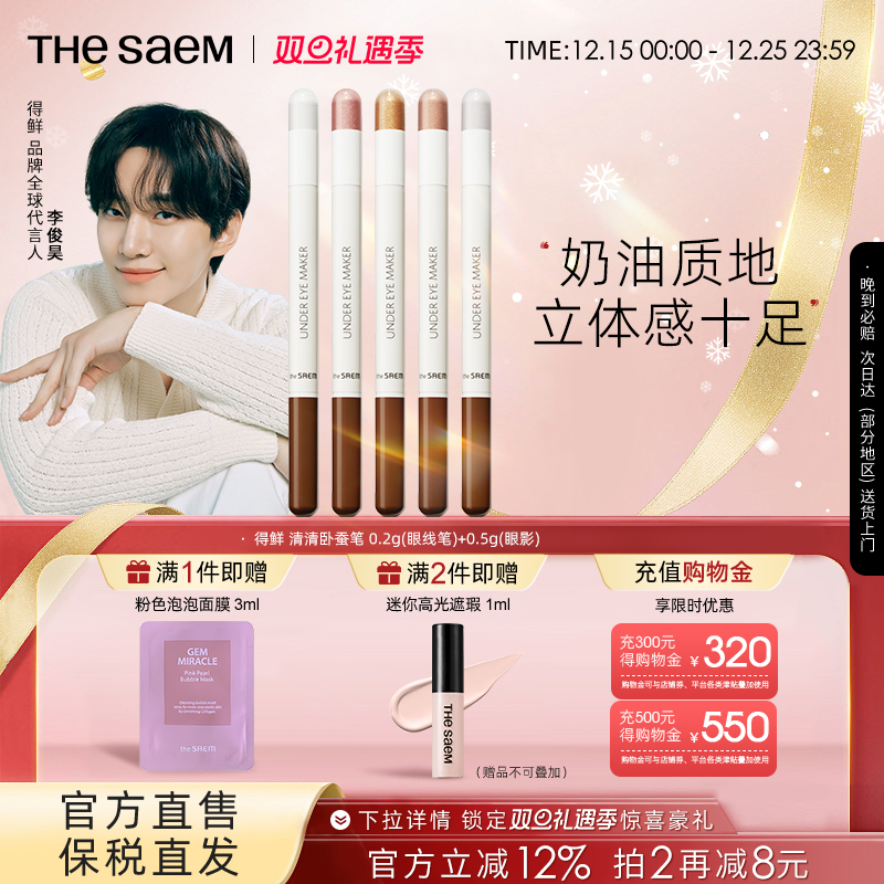 The Saem得鲜双头高光棒卧蚕笔珠光眼影笔提亮持久眼妆不晕染女
