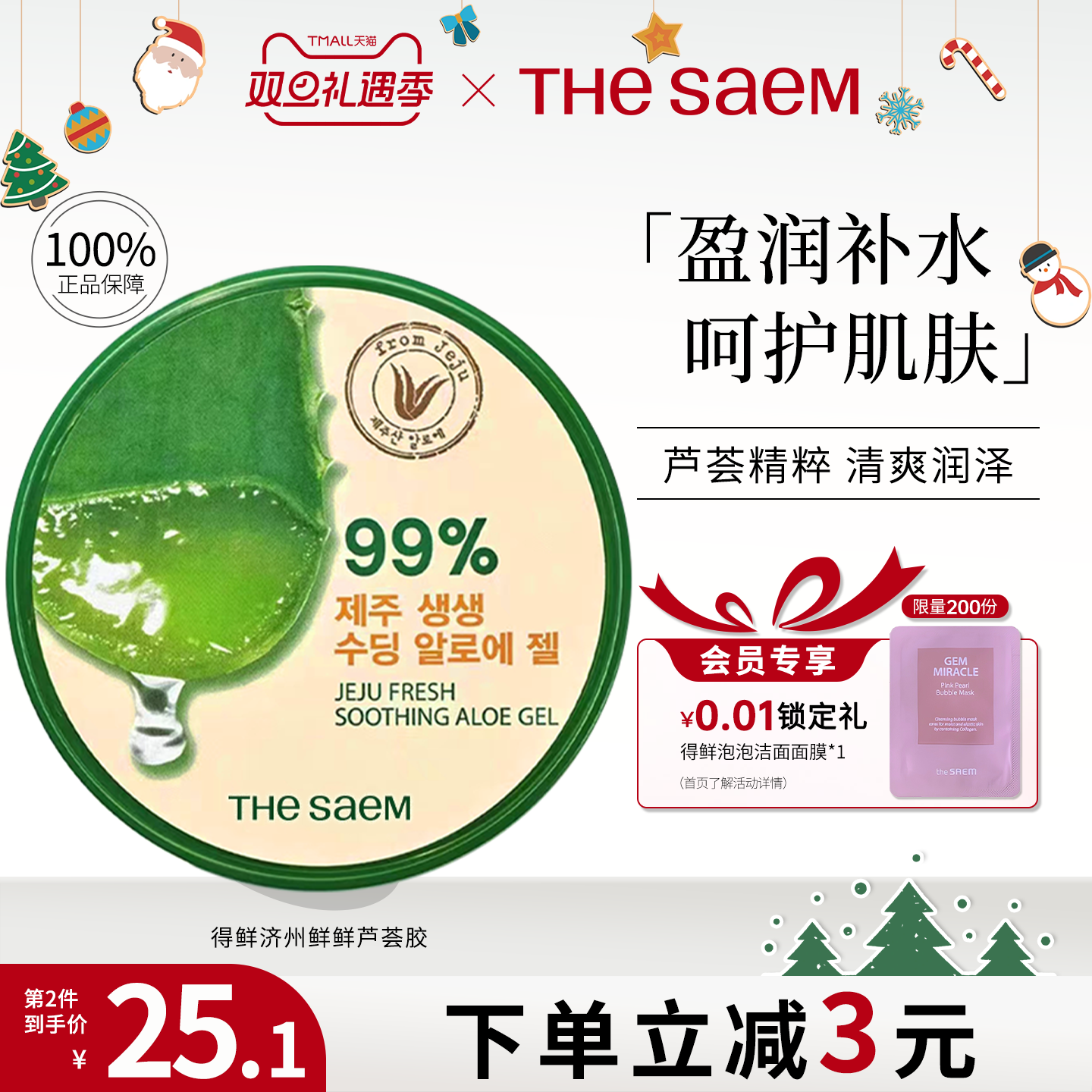 韩国The Saem得鲜芦荟胶免洗保湿补水军训晒后修复面霜冷敷凝胶女