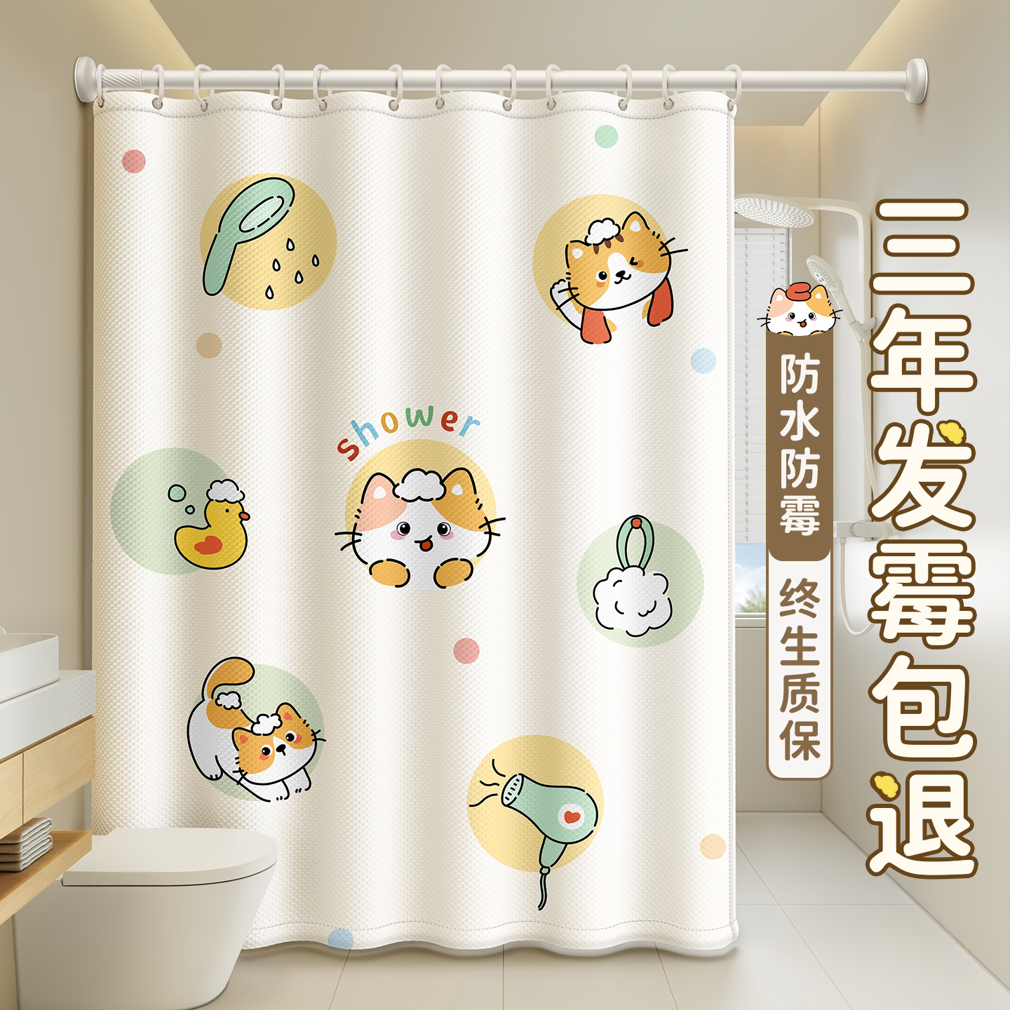 浴室加厚保暖防水浴帘卫生间免打孔套装遮挡隔断帘淋浴帘门帘窗帘