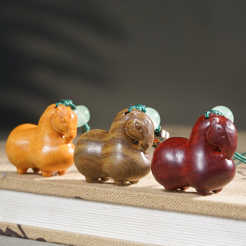 小唐马挂件绿檀木雕刻手把件文玩挂饰礼品生肖钥匙扣文创小件盘玩