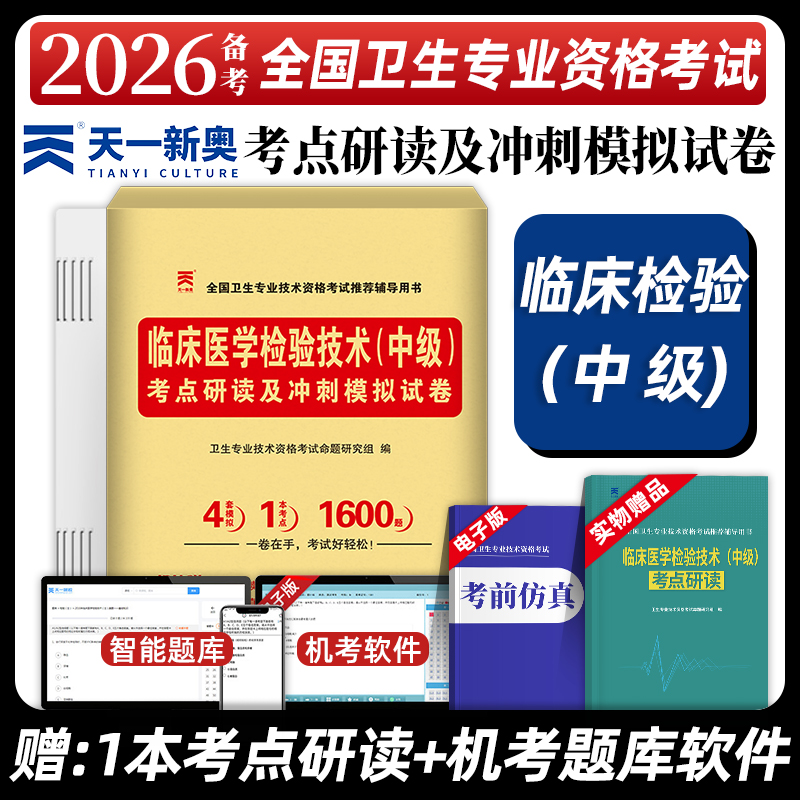 天一医考备考2026年临床医学检验技术中级考试考点研读及冲刺模拟试卷全国卫生专业技术资格考试历年真题习题库可搭人民卫生出版社