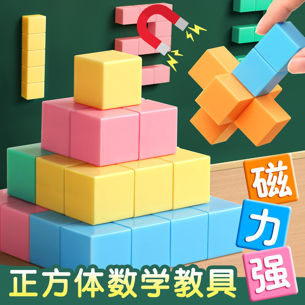 磁性小学正方体积木数学教具一二三四五六学具年级立方体几何体观察物体1/2/3/3.3/4/5/10cm立方块磁吸教具