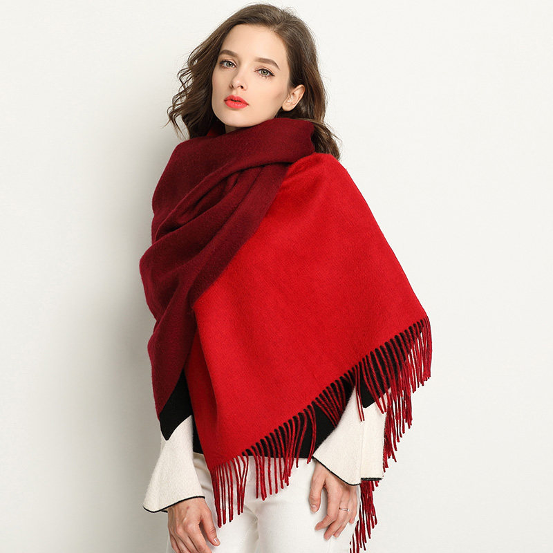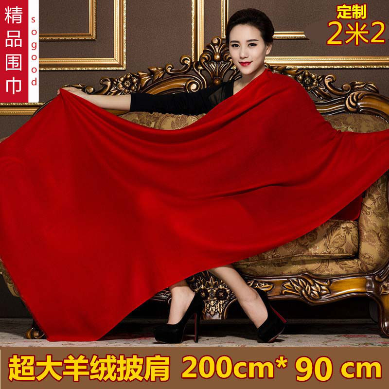 大红色羊绒围巾女夏季羊毛披肩两用妈妈加厚加长超大保暖外搭百搭