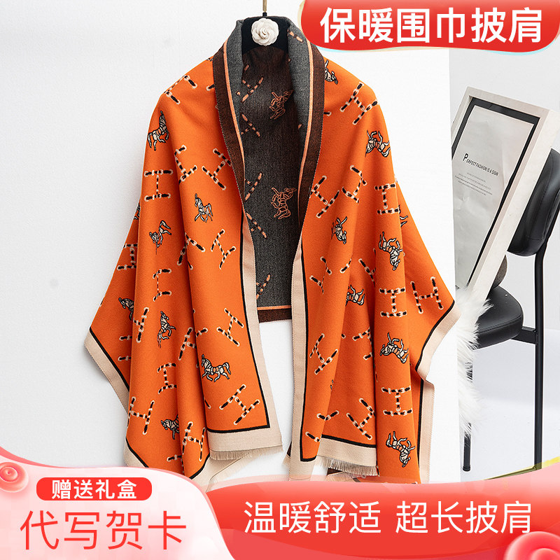 敦煌~中国风高级感双面仿羊绒围巾女冬季百搭加厚超大两用大披肩